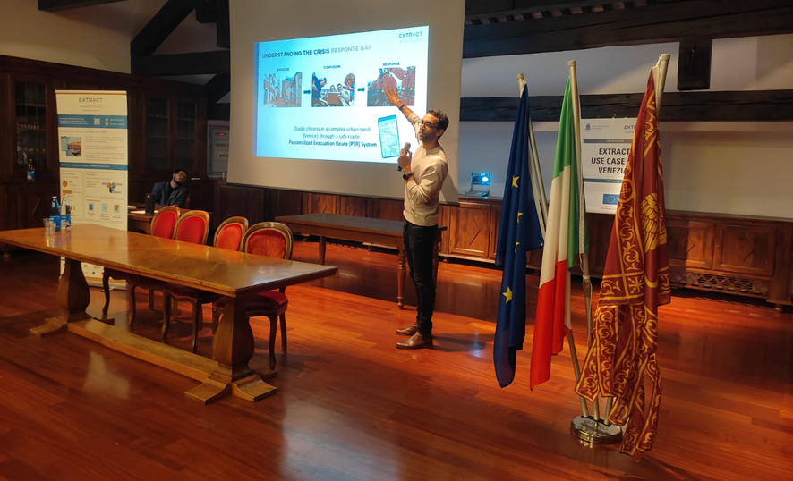 This two-day event brought together local and international policy makers, technology creators and first responders to discuss the critical first 72 hours following a major crisis. In this context, EXTRACT was well-received and used the opportunity to run the technical validation of its technology for personalized evacuation routing in Venice, in collaboration with retired first responders. The event also featured presentations from Eduardo Quiñones (BSC), Enrico Gavagnin (Metropolitan City of Venice) and Emanuele Bellini (Logos), who shared the project’s latest advancements.